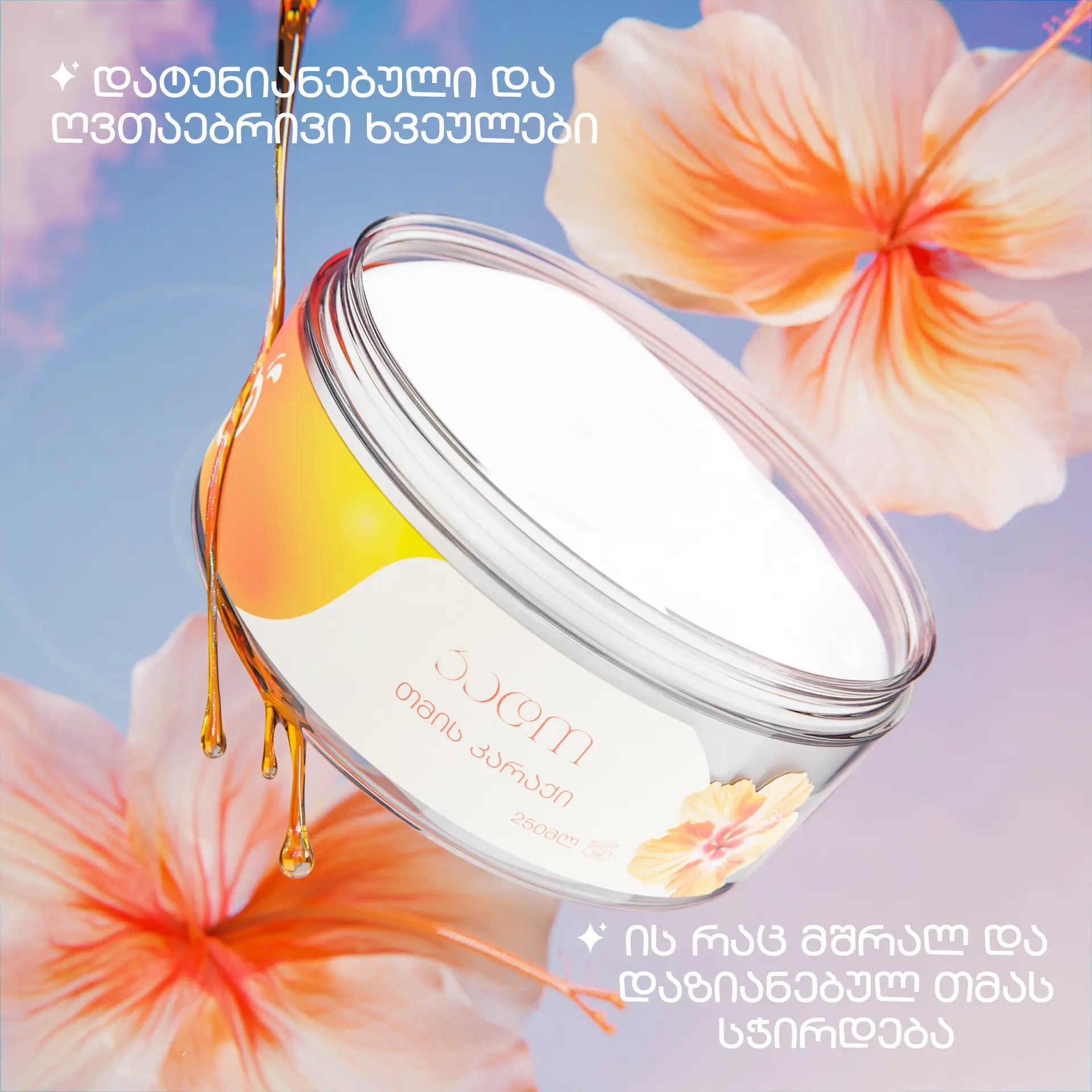 - როგორ მოქმედებს გრძელვადიანად?– ჩვენი თმის კარაქის შემადგენლობა ფორმულირებულია სილიკონის გარეშე. სილიკონი ერთი შეხედვით სასურველ შედეგს იძლევა, თუმცა დროთა განმავლობაში აშრობს და აუხეშებს თმას. ჩვენს თმის კარაქში ზეთები და ბოტანიკური ექსტრაქტები თმის ღერს კვებავენ და ატენიანებენ. ყოველ გამოყენებაზე კი ეფექტი უმჯობესდება.