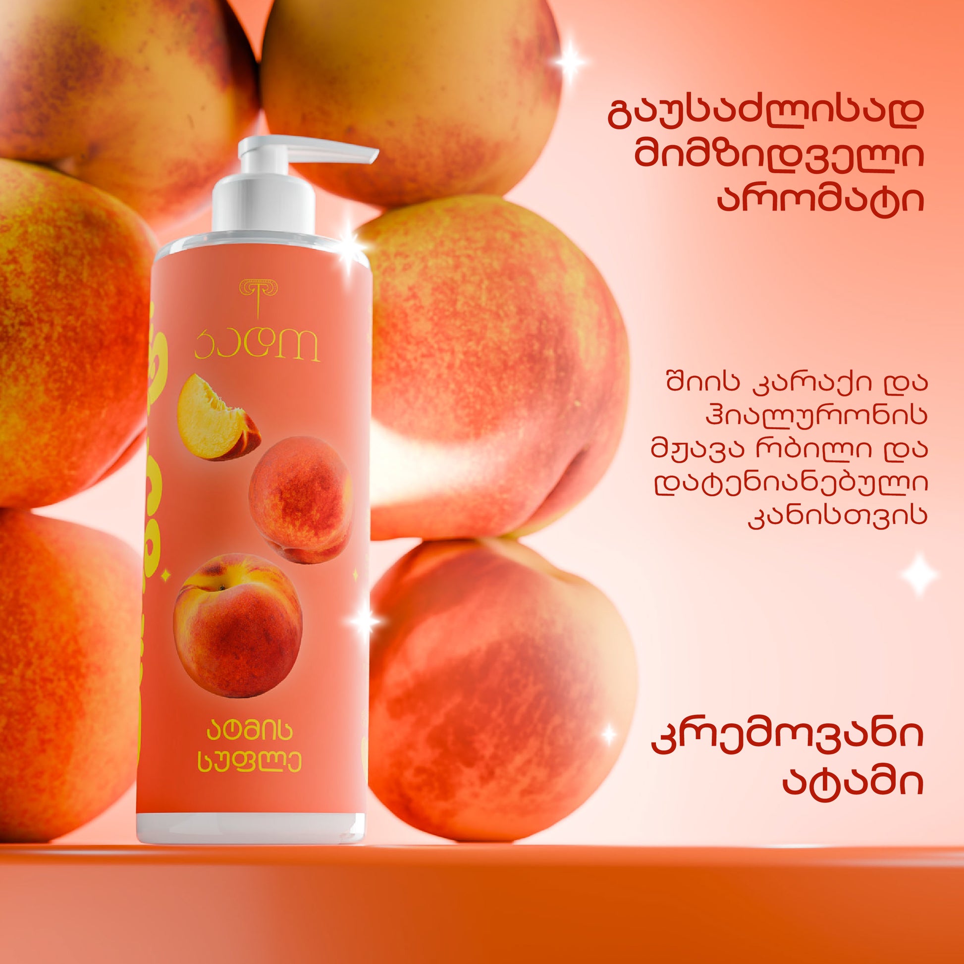 ატმის სურნელოვანი ტანის იოგურტი, რომელიც ატენიანებს და არბილებს კანს, სწრაფად შეიწოვება და ტოვებს გამყოლ და სასიამოვნო არომატს